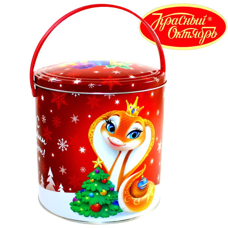 Сладкий подарок на Новый Год в жестяной упаковке весом 1000 грамм